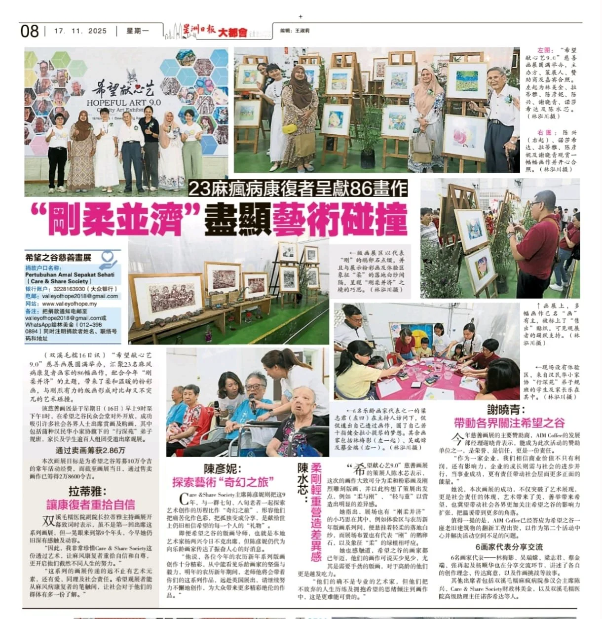 希望之谷义卖画 筹获2.3万捐2单位