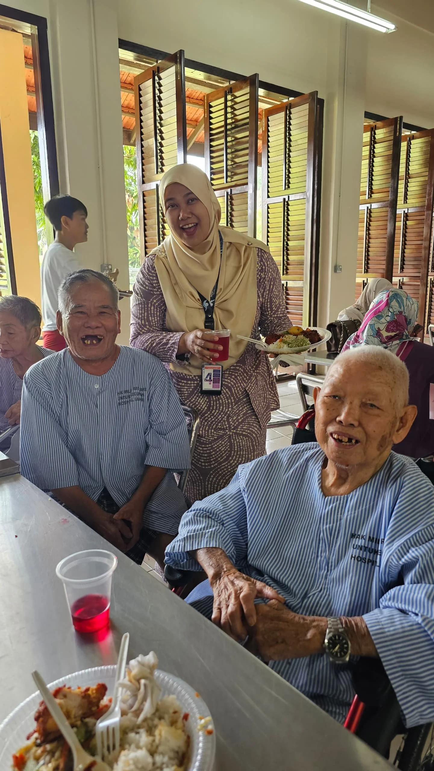 大家围坐一桌,饭菜香气四溢,除了分享美食,更重要的是分享彼此的祝福与感恩。我们要特别感谢医院管理层、医生们,以及PKKN的所有工作人员过去一年里,用满满的爱心与耐心,细心照护着我们的老宝贝们,让这个社区充满温暖与希望。他们的坚持和奉献,是Care & Share Society能够顺利推动各种有意义活动的最大动力。他们的配合,不只是帮我们完成任务,更是在默默改变着一个个院民的生命。